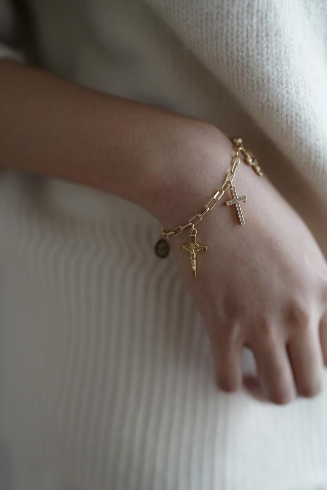 色んなチャームが付いた大人可愛いチェーンブレスレット。