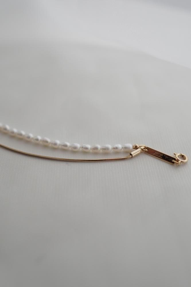 天然石のベビー淡水パールと華奢な細身チェーンを組み合わせたブレスレット。