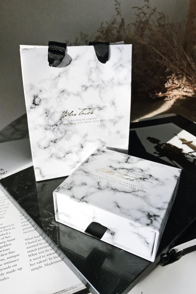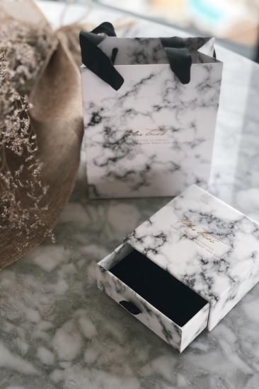 MIDASTOUCH ホワイト大理石柄ショップ袋+ジュエリーBOX 【大・小】