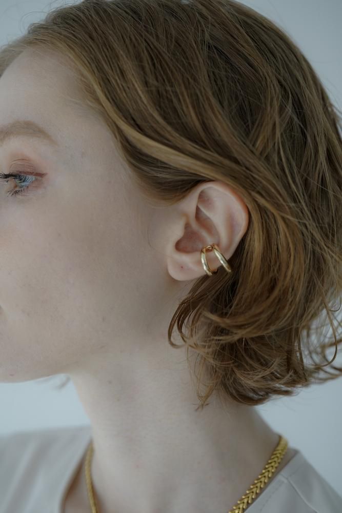 ピアスをレイヤードしているようなデザインのイヤーカフ。