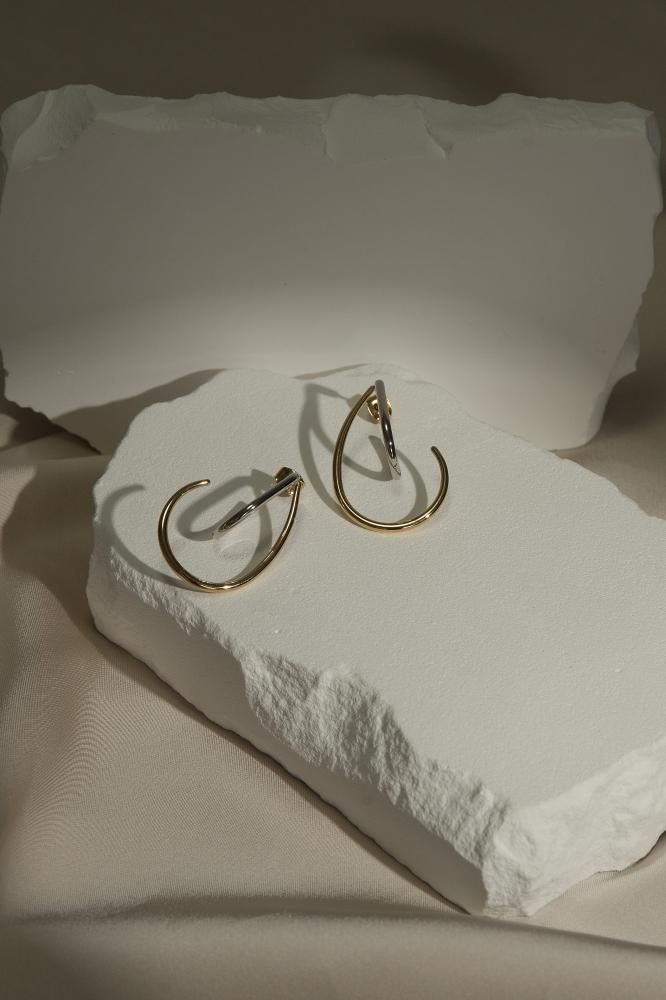 ☑洗練されたデザインとモダンな魅力を融合したバイカラーフープピアス