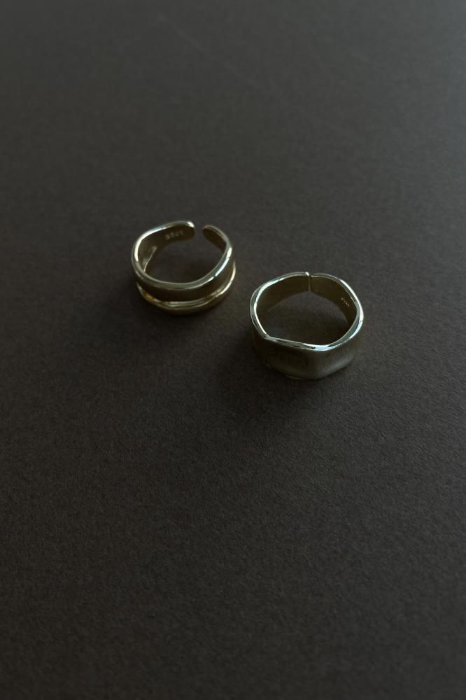 歪み加工を緩く施した2連シンプルデザインのリングの2点セット。