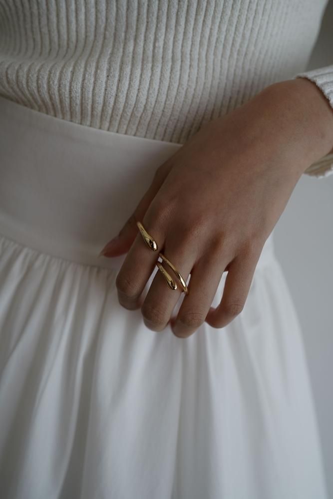 2本の指に付けるダブルリングで、この1つのアイテムで指回りを華やかにしてくれます。