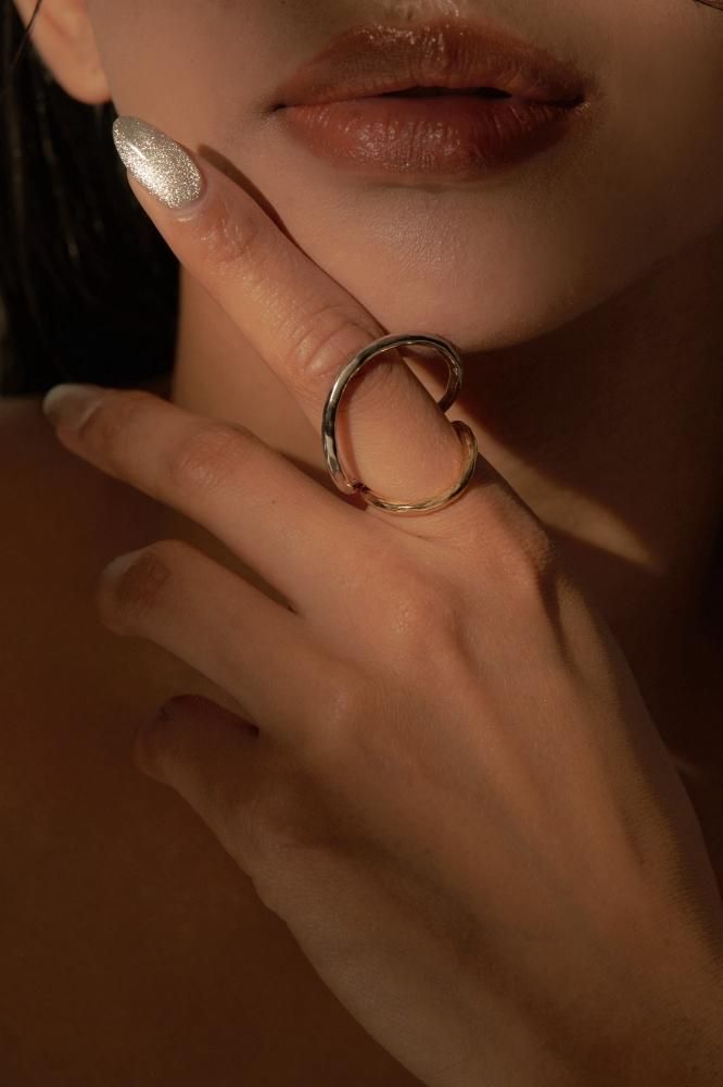 個性的なデザインは、単独での着用はもちろん、他のリングとのスタックもお楽しみいただけます。