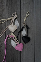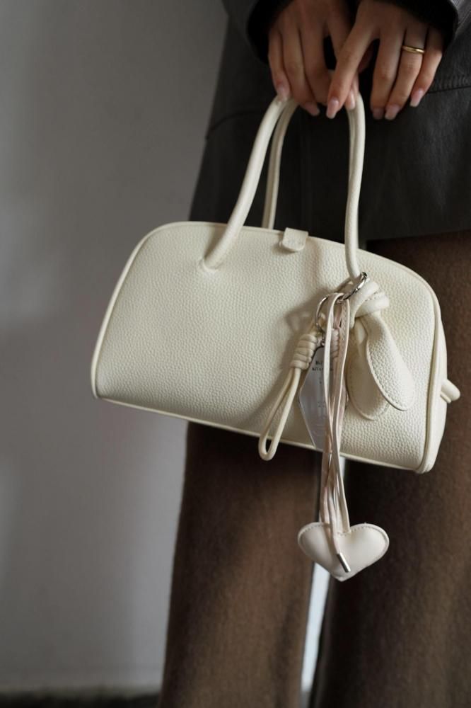 ハートチャームは柔らかいフェイクレザー素材で、コーディネートに甘さをプラスしてくれます。