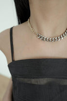 ☑異なるデザインのチェーンを組み合わせたコンビチェーンネックレス。