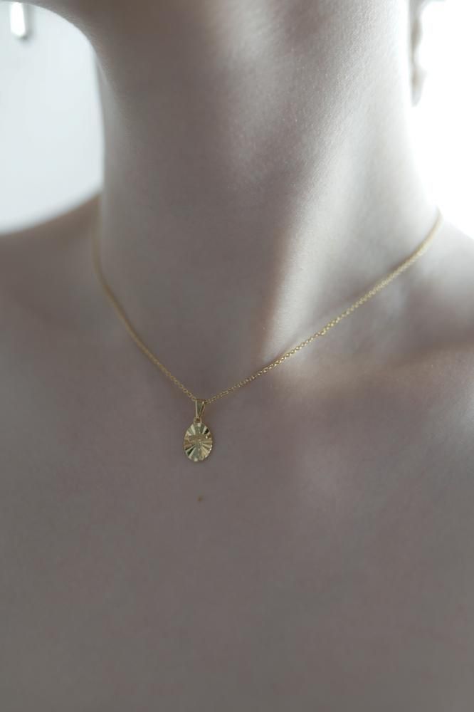 凹凸のある繊細な刻印で、重ね付けにもオススメな小さなメダイチャームネックレス。