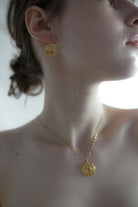 ギリシャらしい模様を施したデザインで、中央にはガーネットの天然石をあしらいました。
