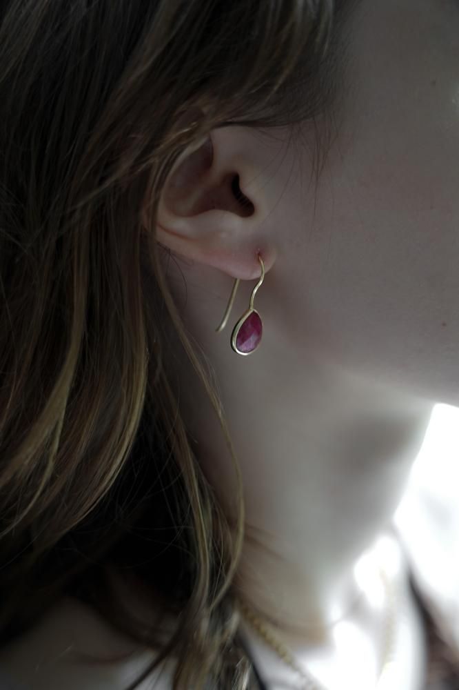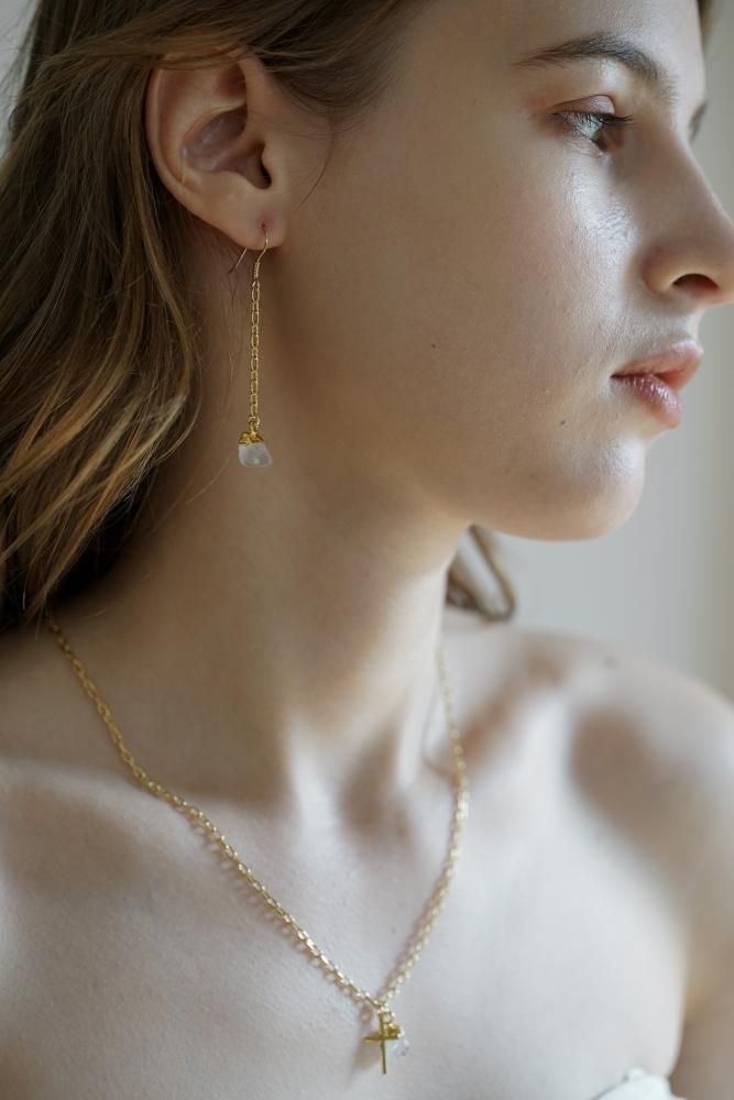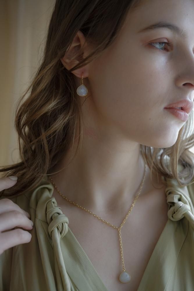FORTUNA[Silver925] 天然石ドロップピアス [ラブラドライト/ルビー/ムーンストーン]*
