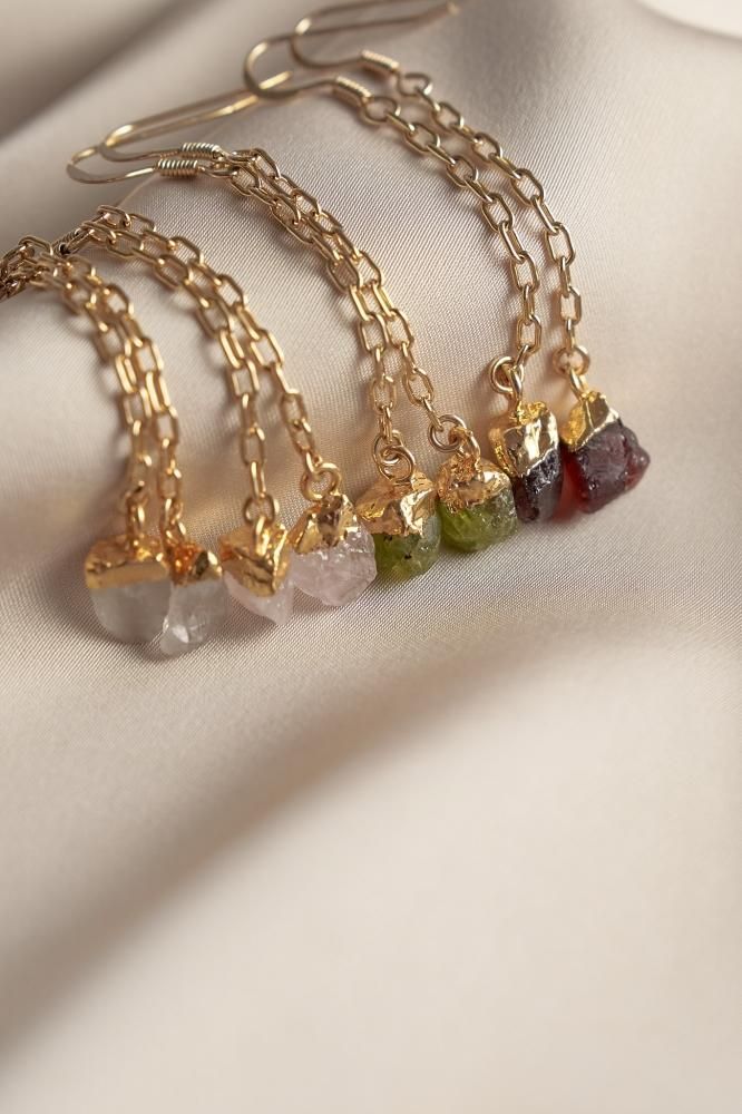 FORTUNA[NF][Silver925] 天然石ドロップチェーンピアス・イヤリング[ペリドット/ガーネット/クリスタル/ローズクォーツ]*