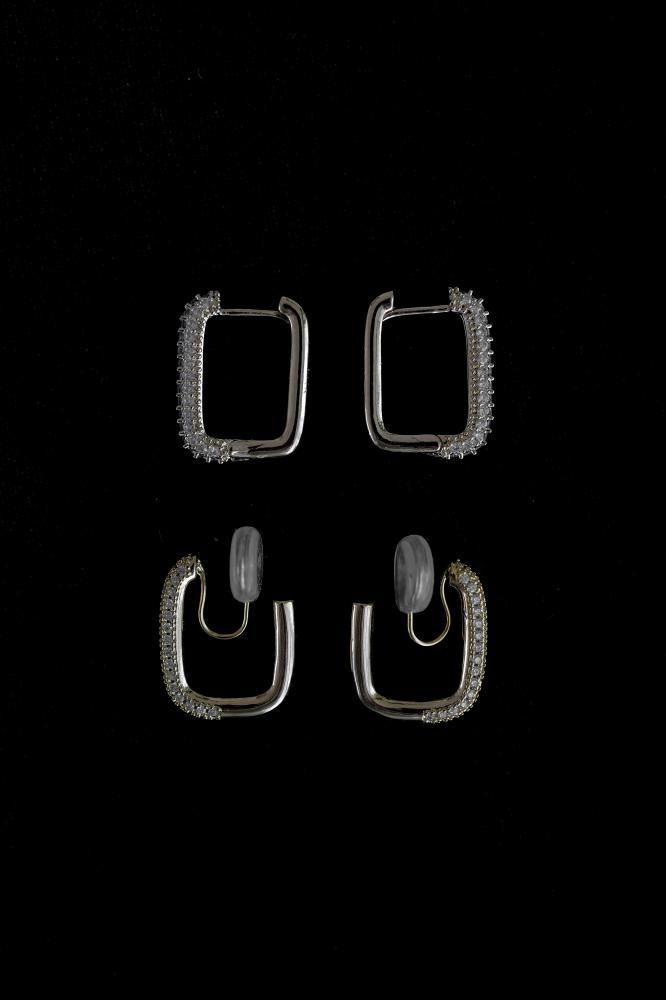 ジルコニアパヴェスクエアクリップピアス・イヤリング