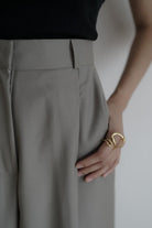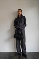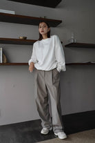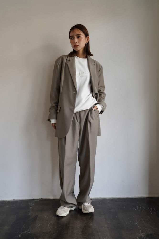 パンツもゆったりとしたサイズ感ながら、ストンときれいなストレートラインにセンタープレスがきちんとした印象を与えてくれます。