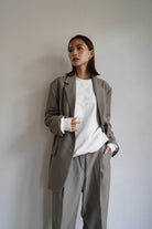 ジャケットとパンツそれぞれ別のコーディネートにも合わせやすいオーソドックスなデザインで、幅広く着まわせるセットアップです。