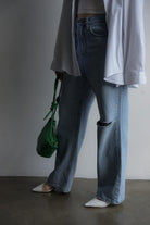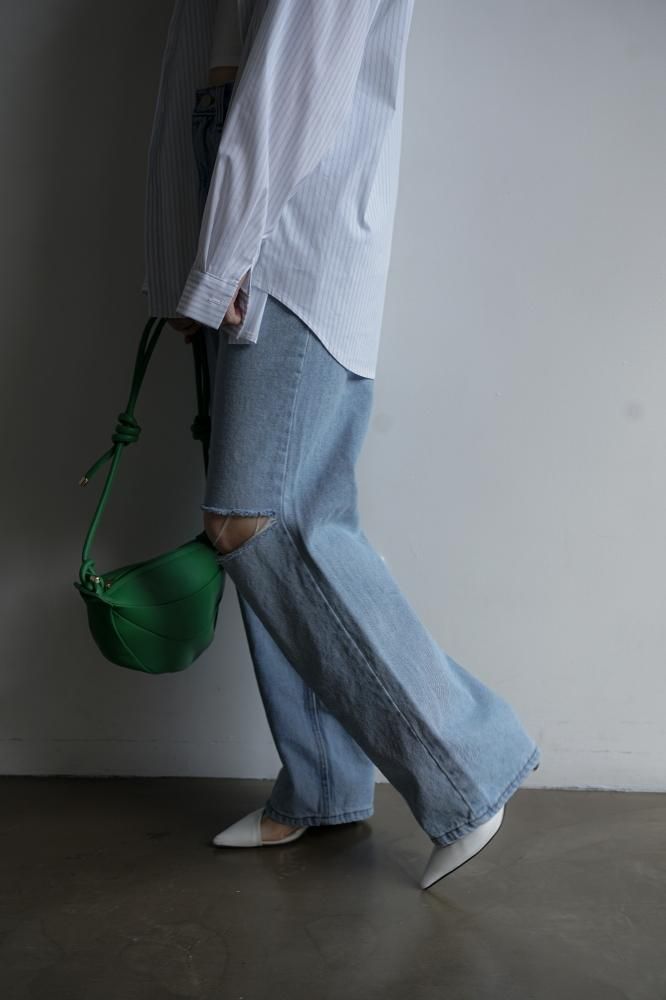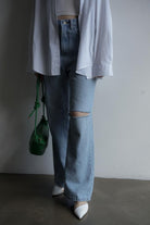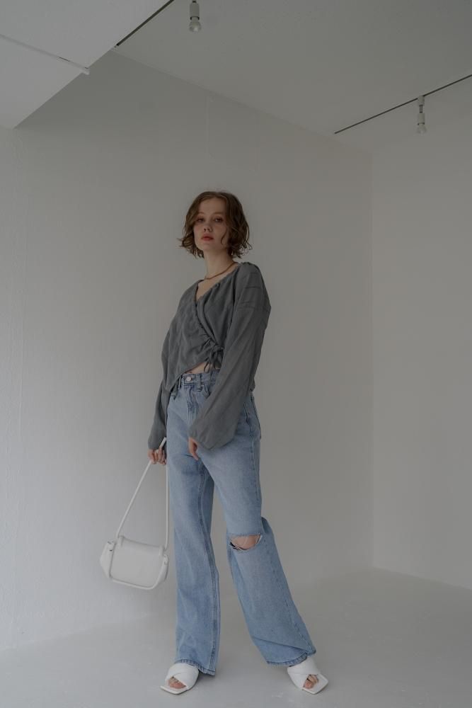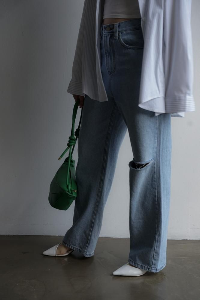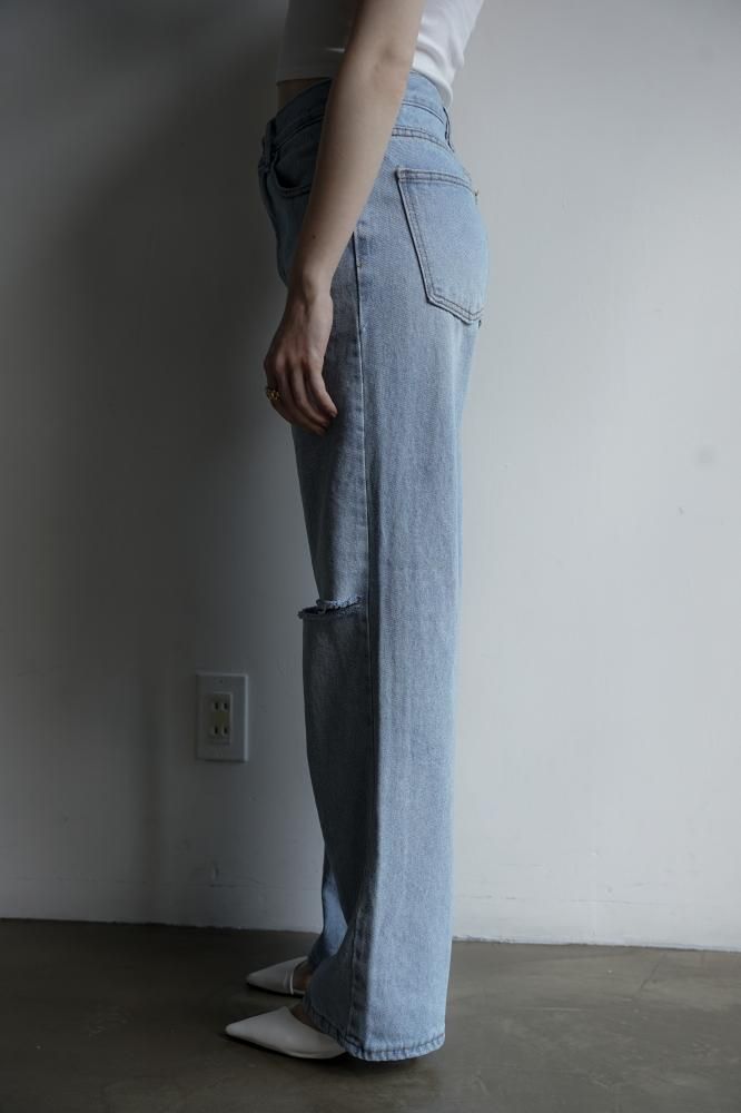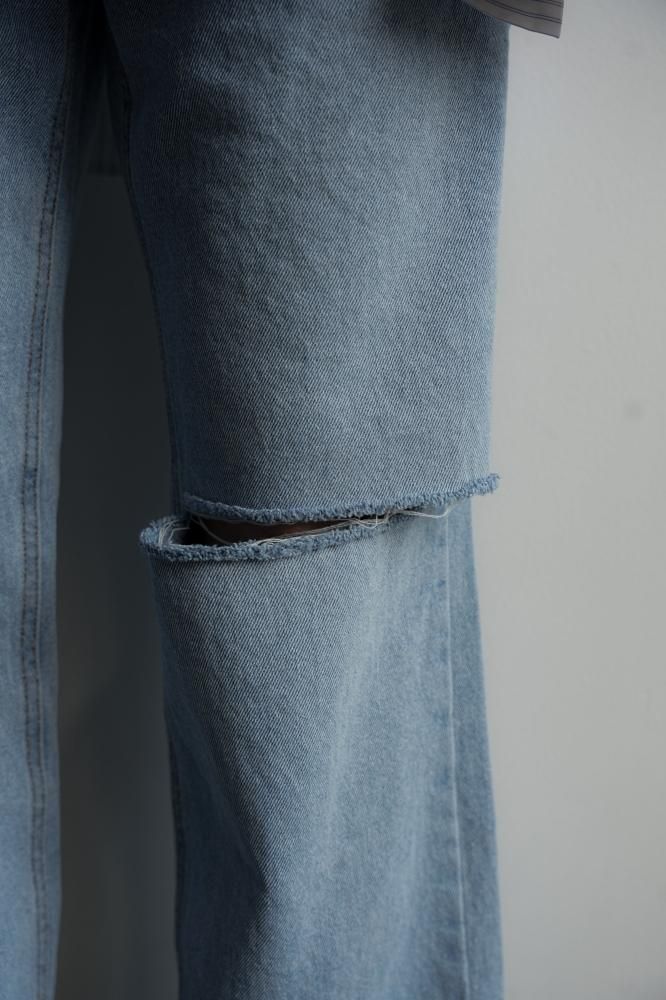 ☑ダメージの風合いがアクセントになったストレートデニム