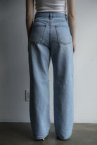 腰回りにはすっきりとした落ち感があり全体にルーズなサイジングで仕上げたストレートデニム。