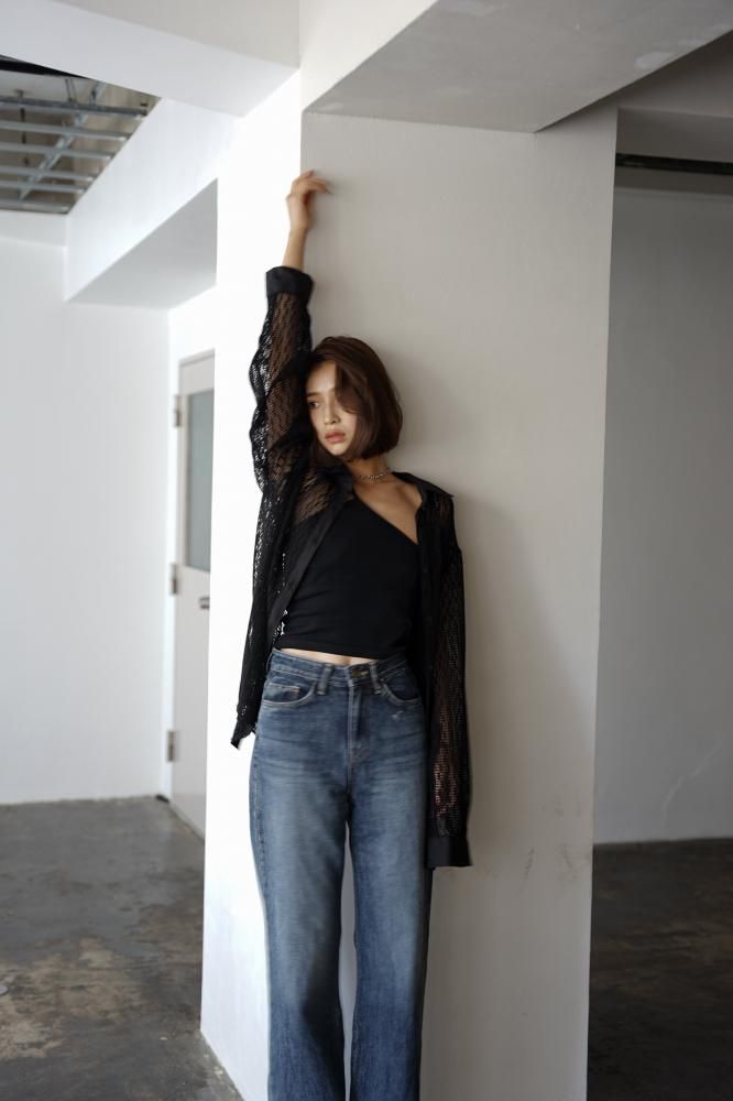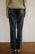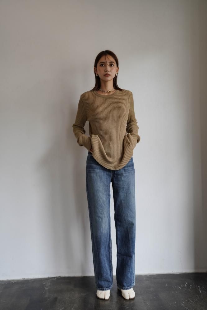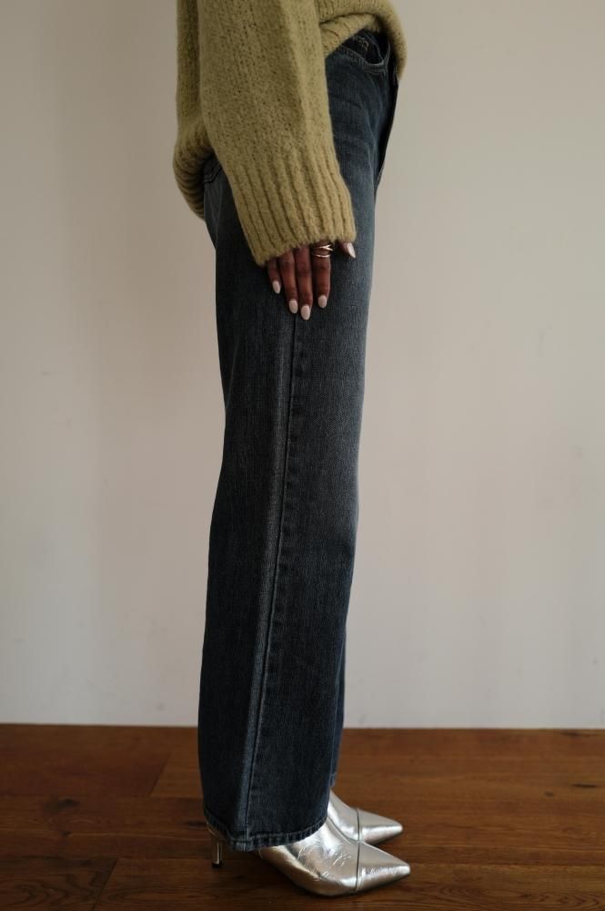ニットやブラウス、シャツジャケットと合わせ、ハイウエストを活かしたきれいめにも使える優秀なデニムパンツです。