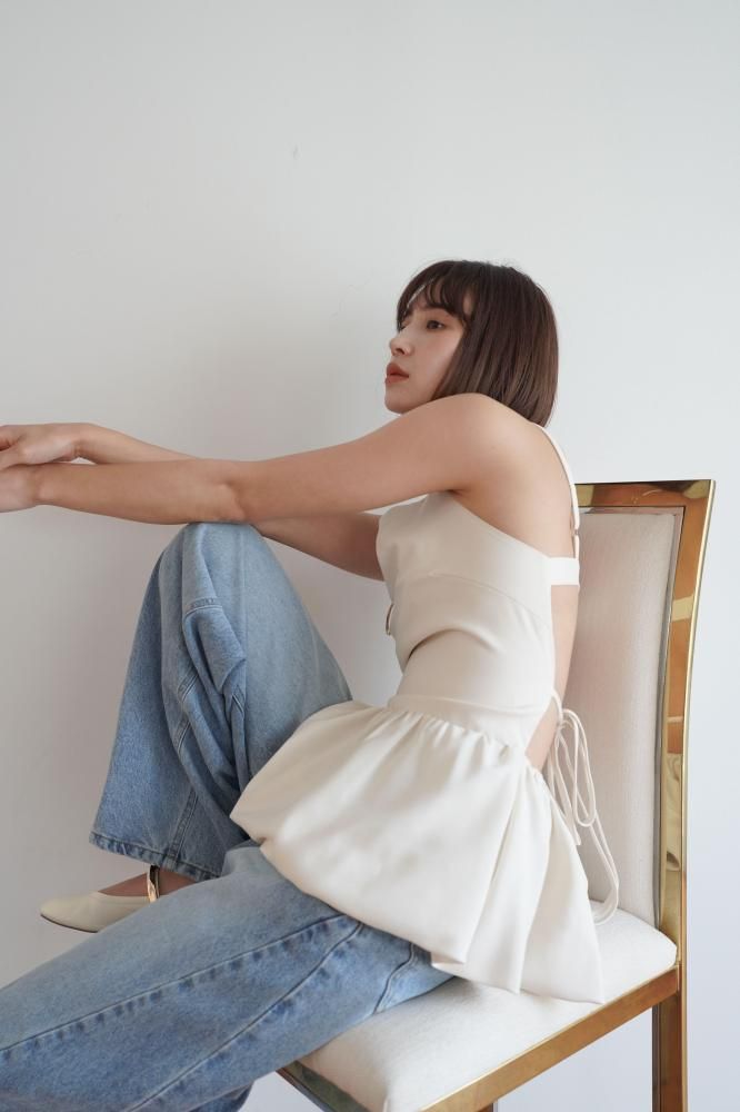 腰まわりは程よくフィットしつつ、裾に向かって丸みのある立体ワイドシルエット。