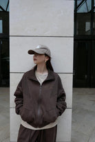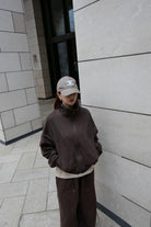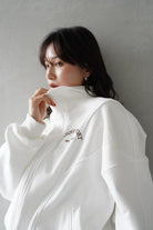 ラフさを抑えたミニマルなハイネック仕様で、ファスナーの開閉によって抜け感のある着こなしにも対応。