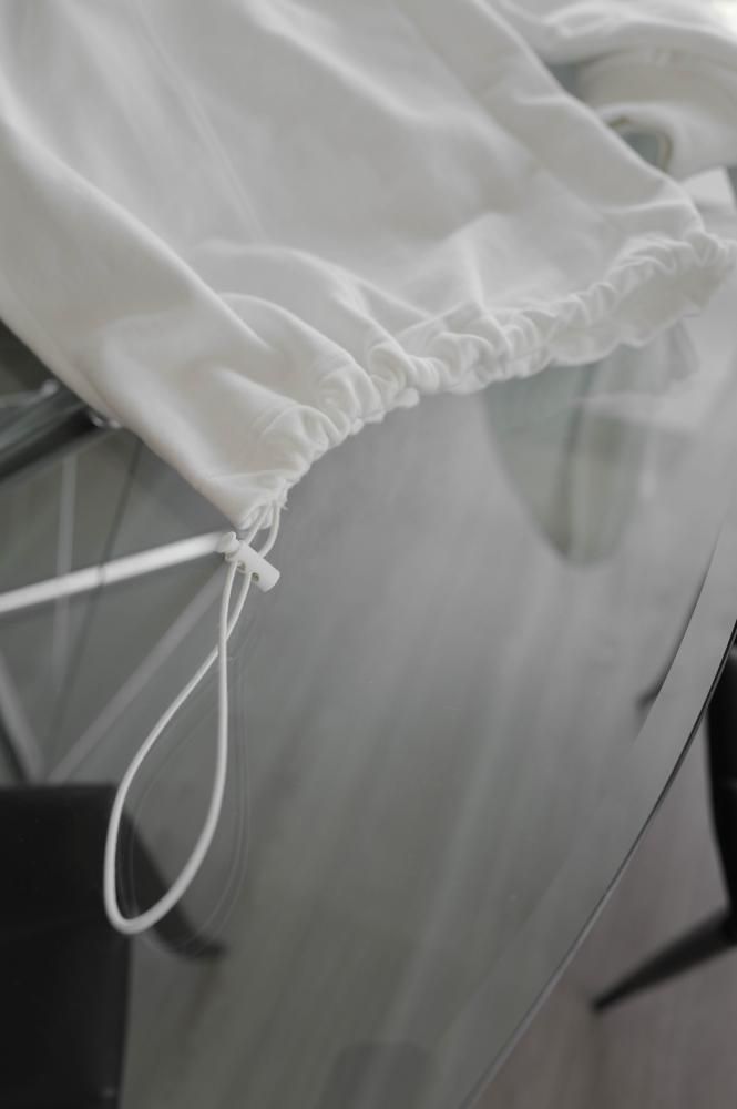 裾は絞れるデザインで、シルエットの変化も楽しめます。