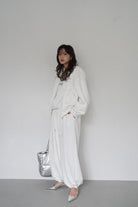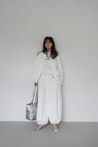 パンツはたっぷりとボリュームを持たせたワイドシルエット。
