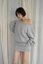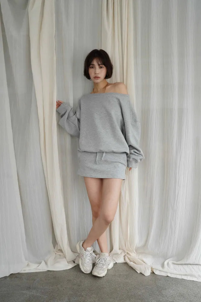 Off-Shoulder Sweat Lounge Setup [GRAY/BLACK]
