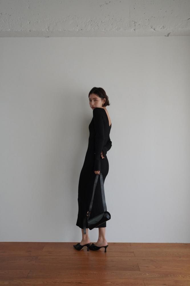 全体的にリブ素材が使用され、体のラインを美しく見せるタイトなシルエットワンピース