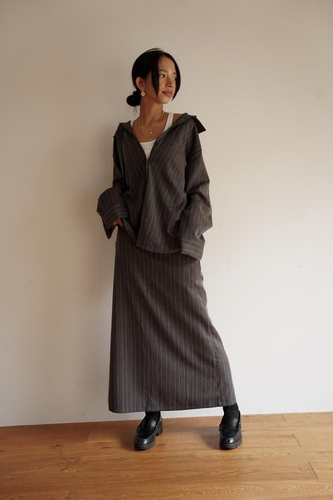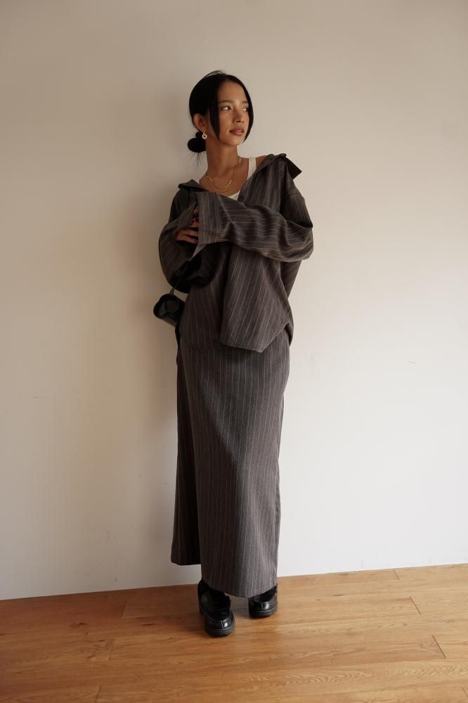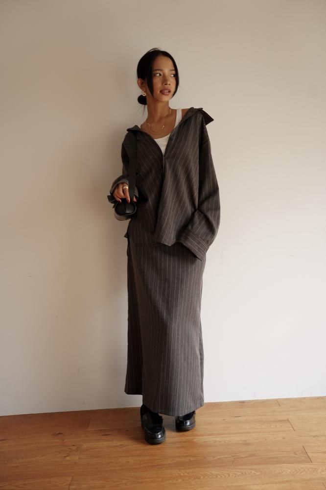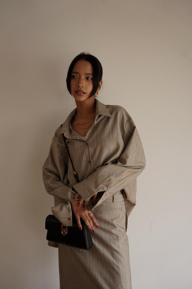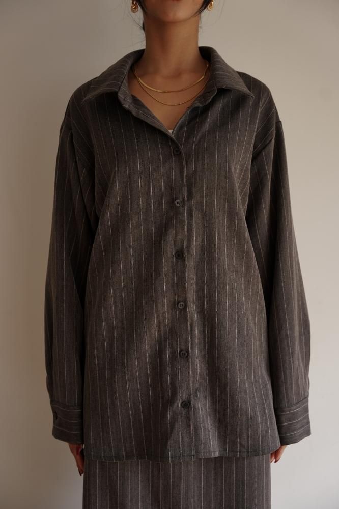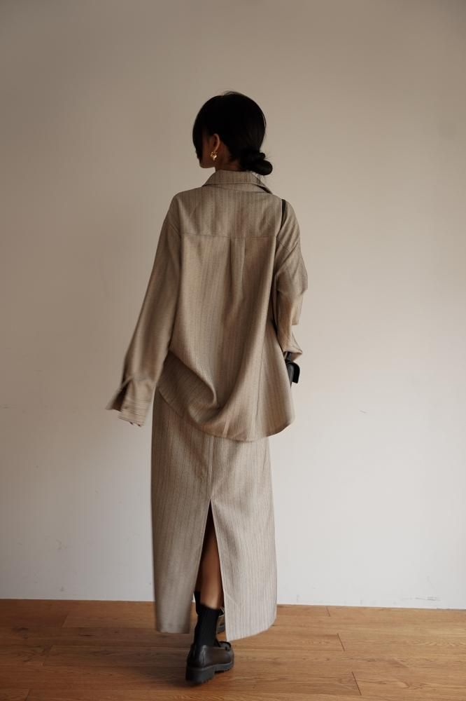 Stripe Shirt & Skirt Set Up [KHAKI/GRAY]
