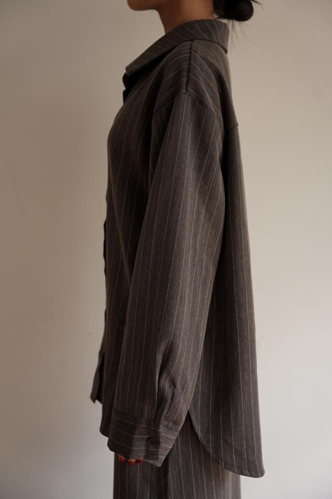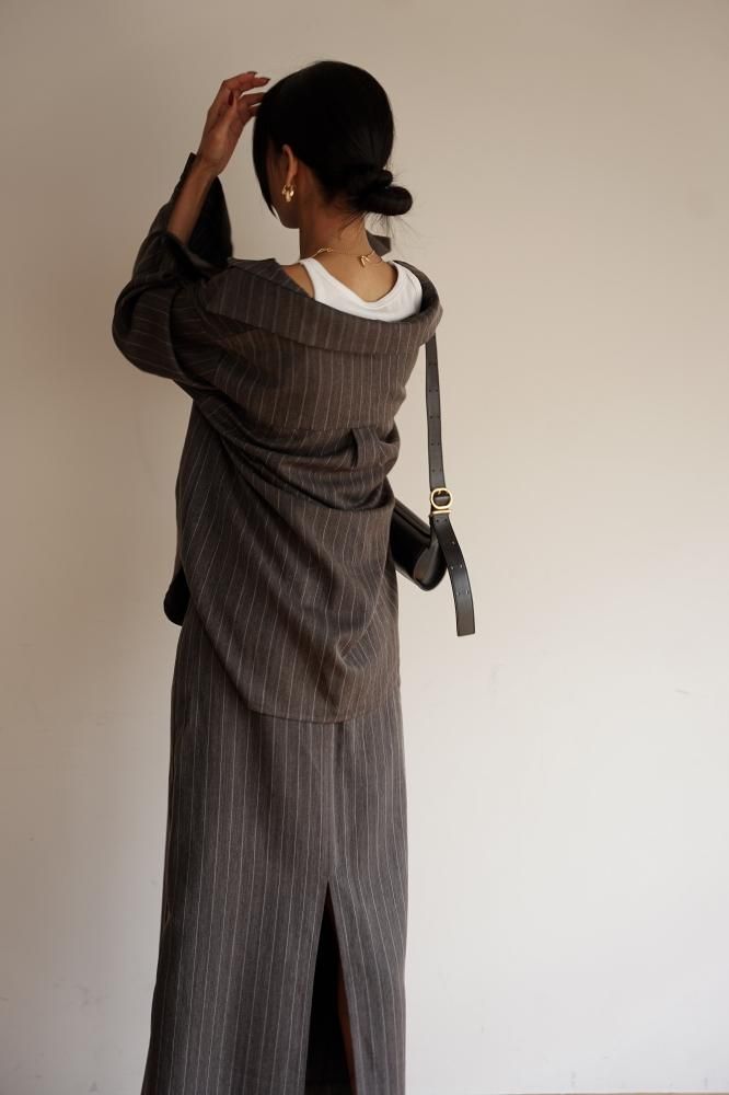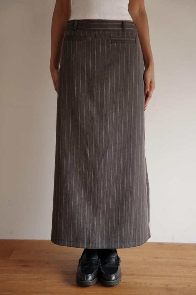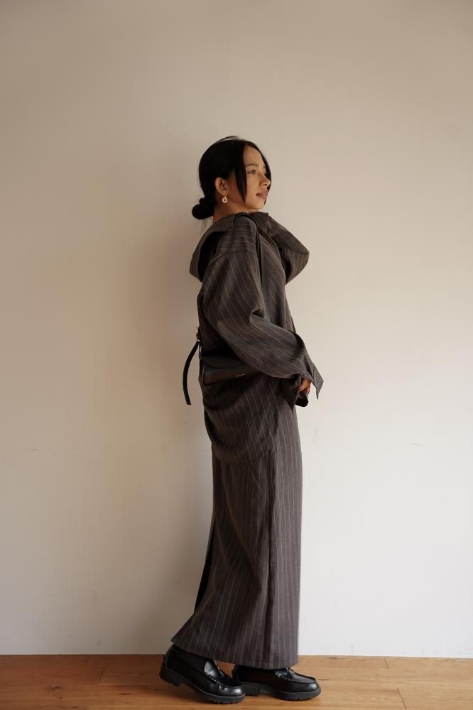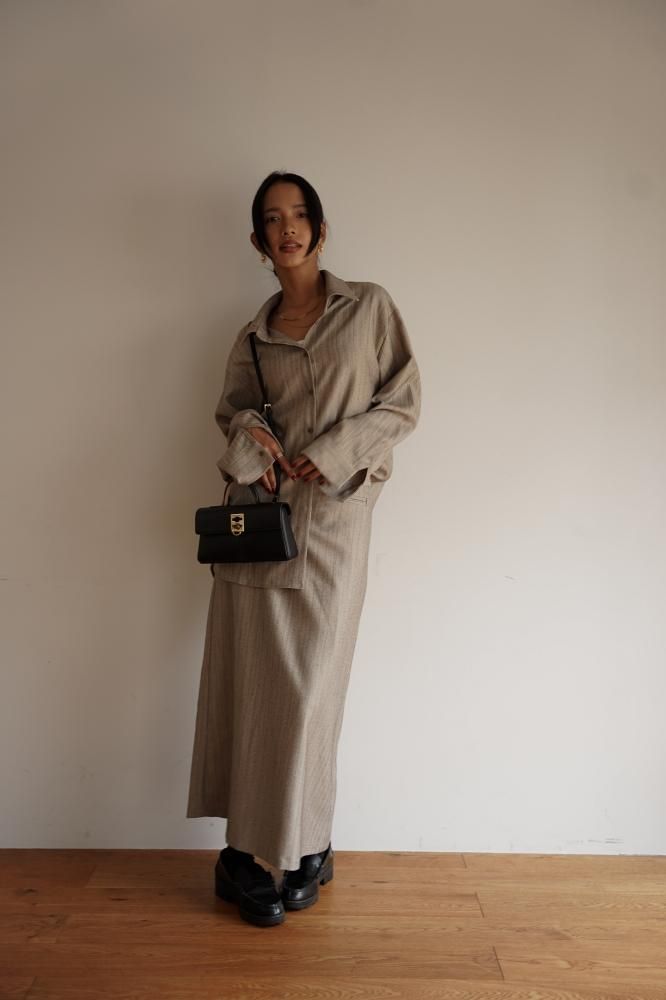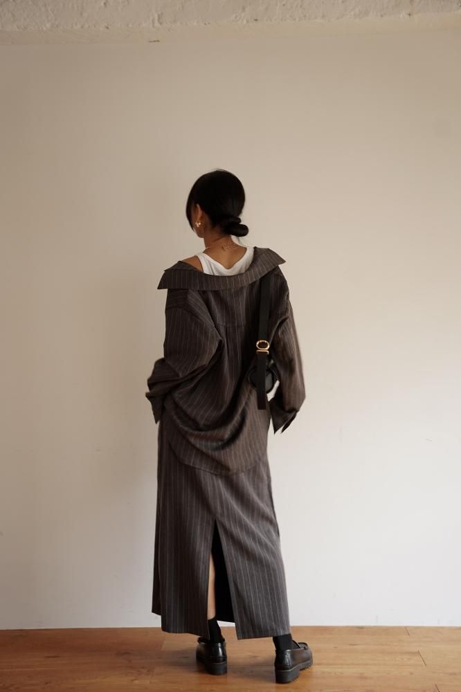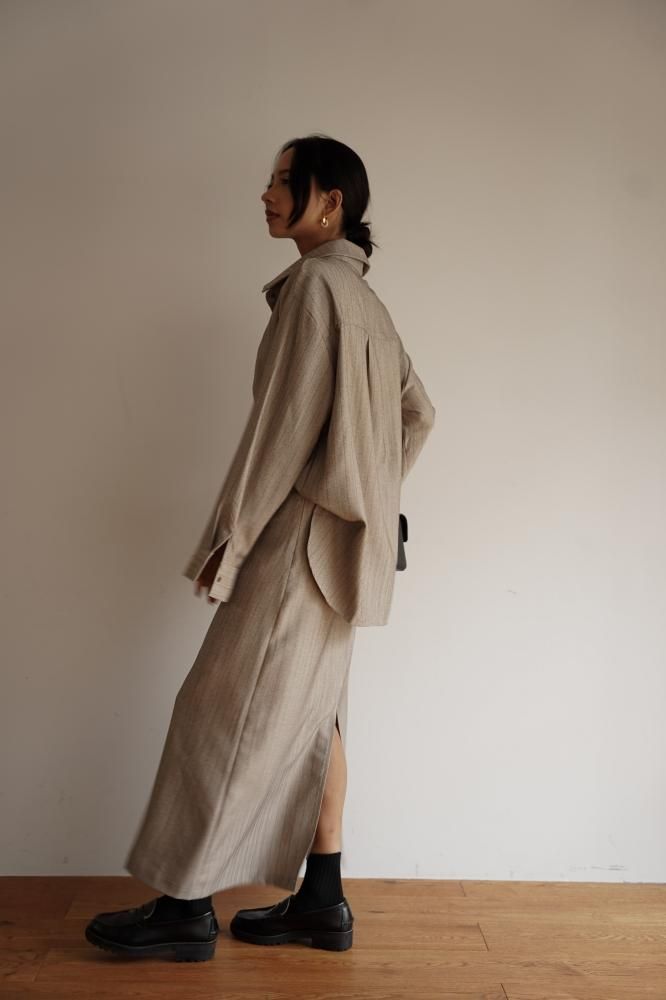 Stripe Shirt & Skirt Set Up [KHAKI/GRAY]