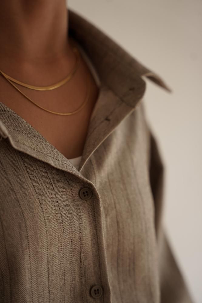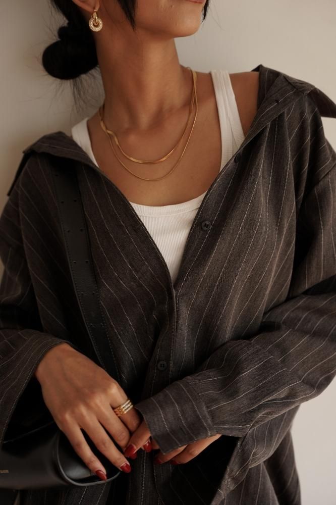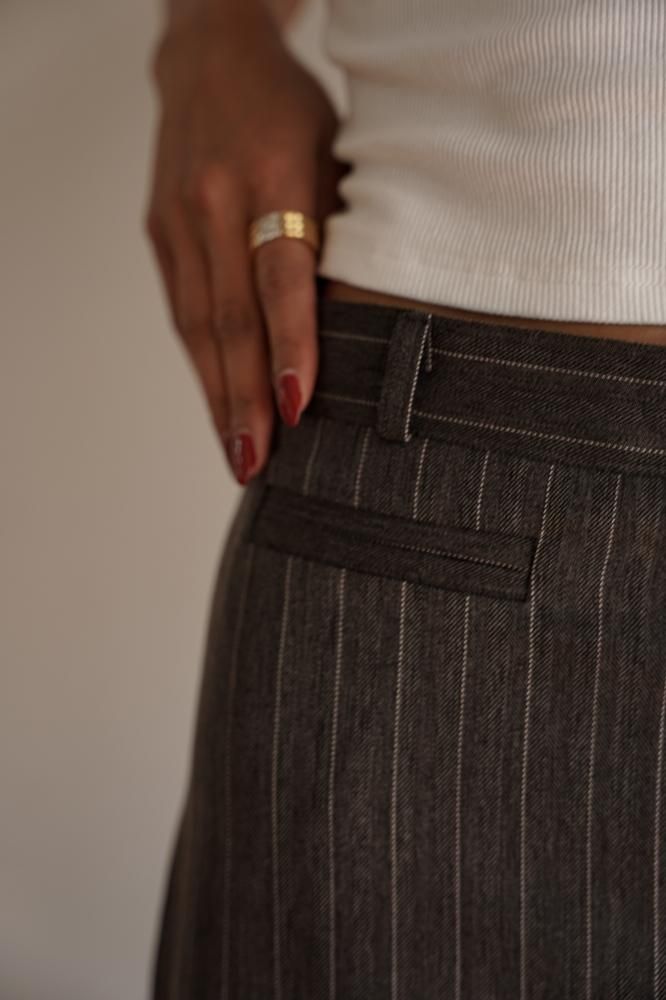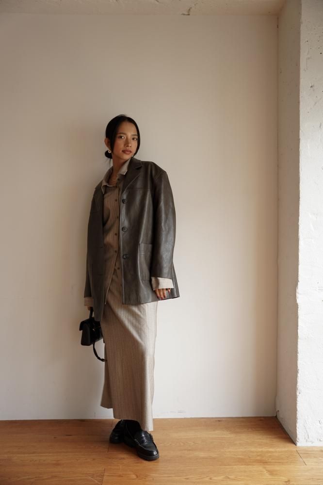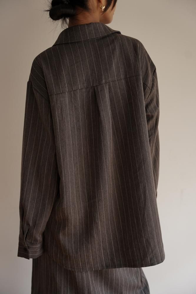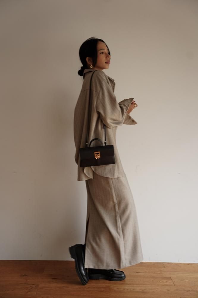 Stripe Shirt & Skirt Set Up [KHAKI/GRAY]