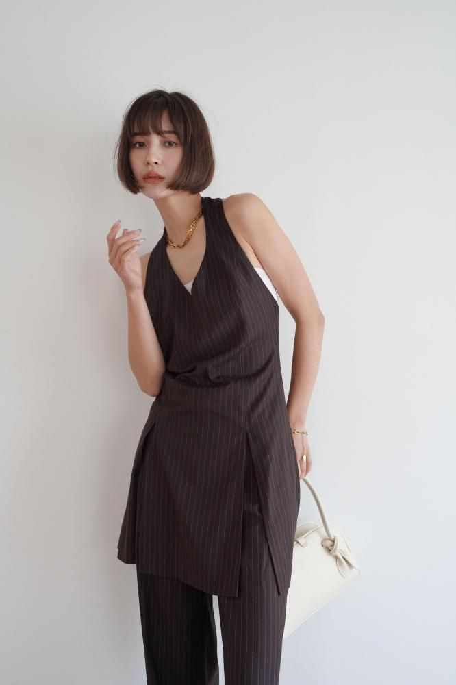 halter Tops & Straight Pants Set Up [BROWN][S/M]