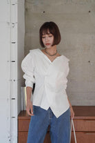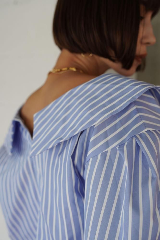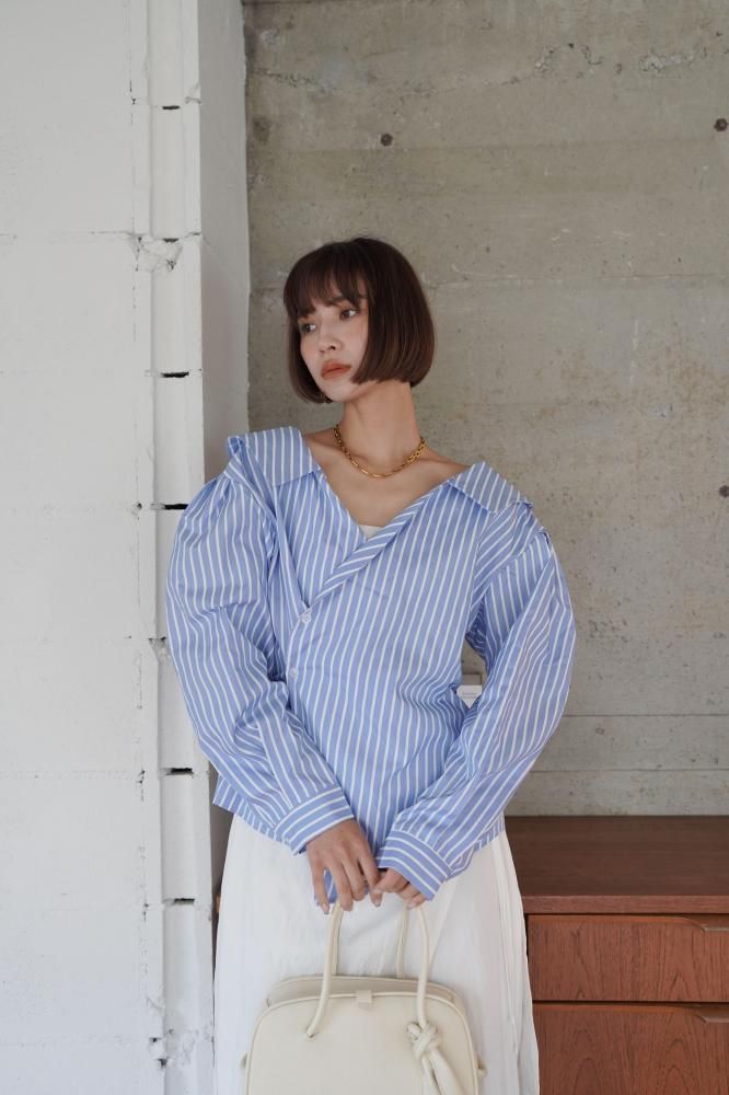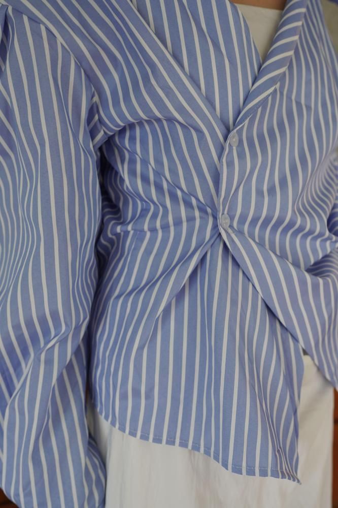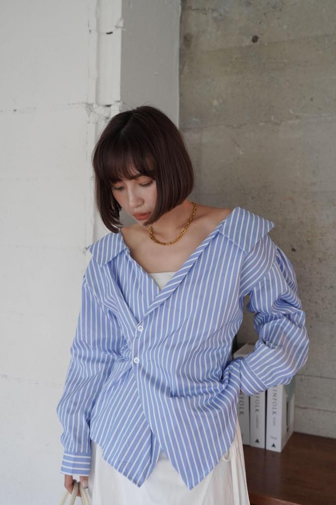Collar Twist Shirt [BLUE/WHITE]