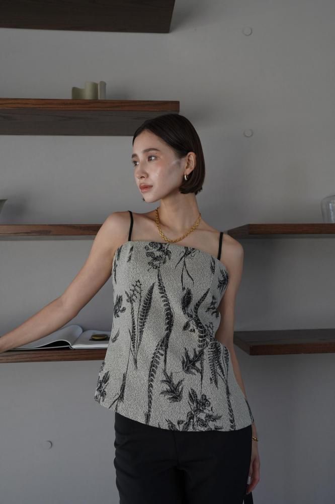 繊細なリーフ柄が浮かび上がる、存在感たっぷりのジャカードキャミソールトップス