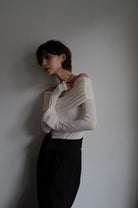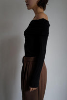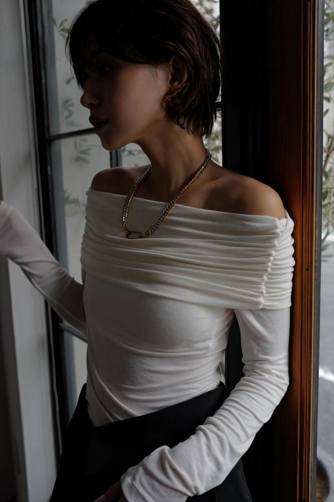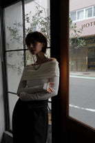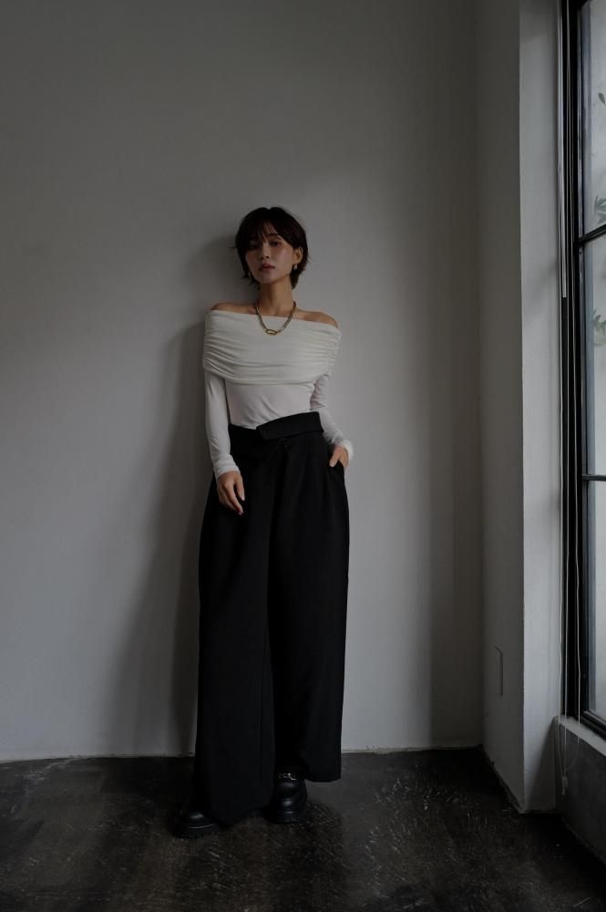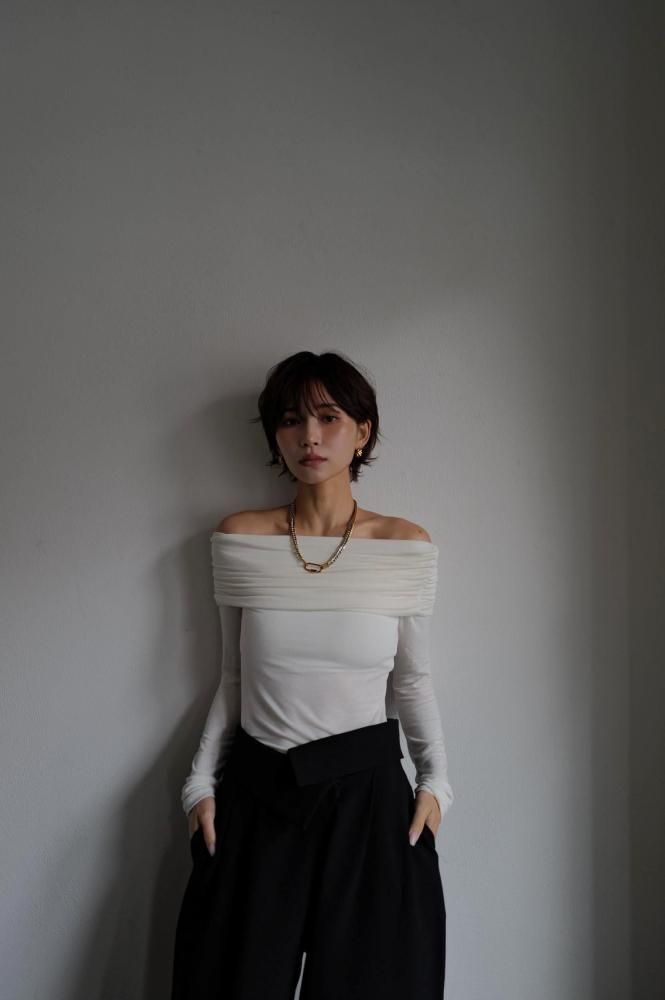 Drape Off Shoulder Tops[OFFWHITE/BLACK]